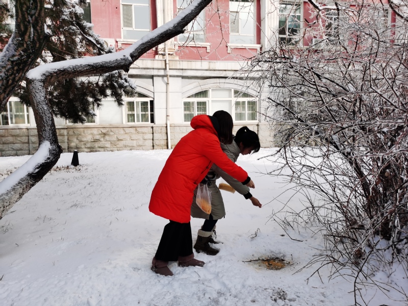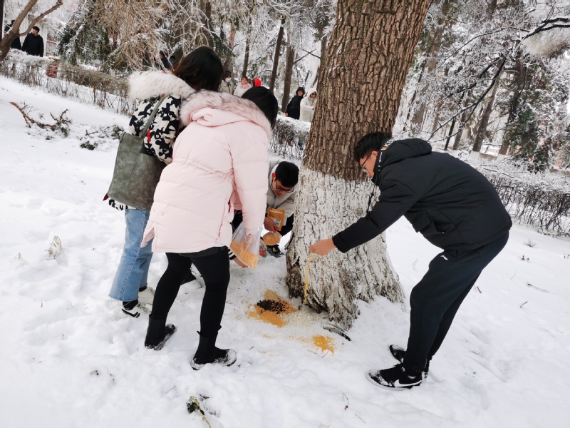 今后,公司研究生党员们会定期组织投喂校园小鸟,帮助它们度过食物短缺的冬天。