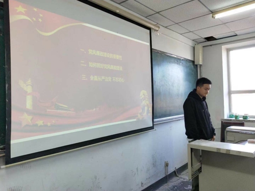 本网讯(通讯员 田鑫)为全面推进党的建设,坚持全面从严治党,推进党风廉政建设和反腐败斗争。11月1日,ag旗舰厅官方网站在南湖校区主楼1401室举办“全面从严治党”主题微党课。本次微党课由170308班班长赵凯主讲,17级全体党员参加。