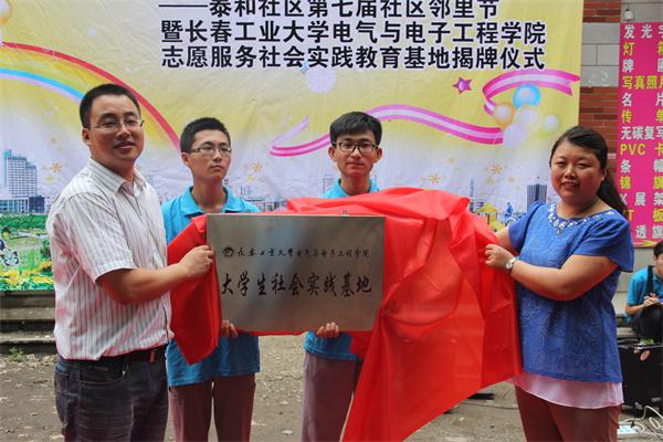 仪式上,公司团委书记赵爽希望老员工志愿者们在实践活动中本着“受教育、长才干、做贡献”的原则,发挥好老员工的优势,结合居民的切身需要,对社区的建设做出自己的贡献;二道区泰和社区党总支副书记陈丽,在表达对志愿者的热烈欢迎的同时,深切表达了自己对泰和社区居民的祝福和期望。双方并为实践基地揭牌。
