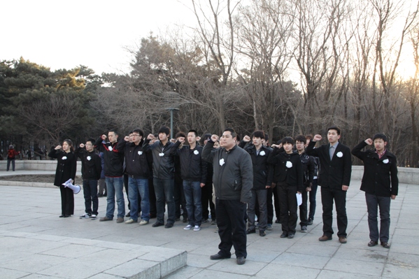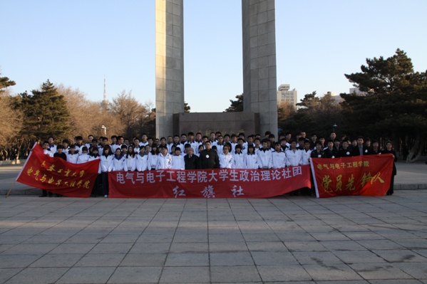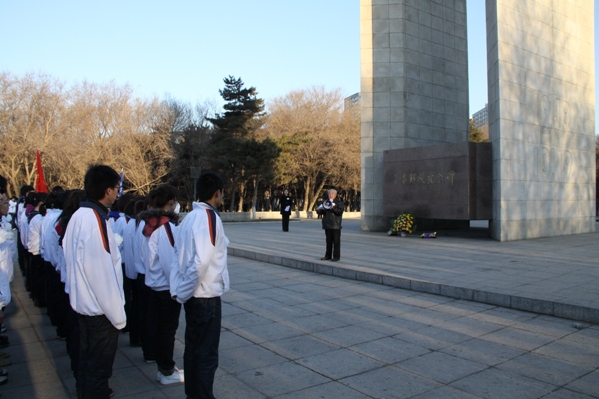 来到解放纪念碑前全体同学向革命烈士默哀3分钟,追忆先烈们的音容笑貌,缅怀先烈们的丰功伟绩,告慰先烈们的峥嵘岁月,随后党员代表为烈士们敬献白花,员工党支部书记郑洪斌老师领誓,铿锵的誓词表达了前辈们的流血牺牲不仅仅是为了让我们拥有一片晴空,呼吸自由的空气,更希望受过深重灾难的祖国在我们的手中变得更加繁荣、昌盛。随后由090305班徐乐发言,大家要牢记自己的使命,不忘先烈遗志,继承先烈们的光荣传统,最后董占武老师在总结发言时回顾了长春解放的时候艰辛历程,让同学们牢记历史,领悟先烈们的坚定信念,而这种精神也定会激励着同学们去开拓更加美好的未来。