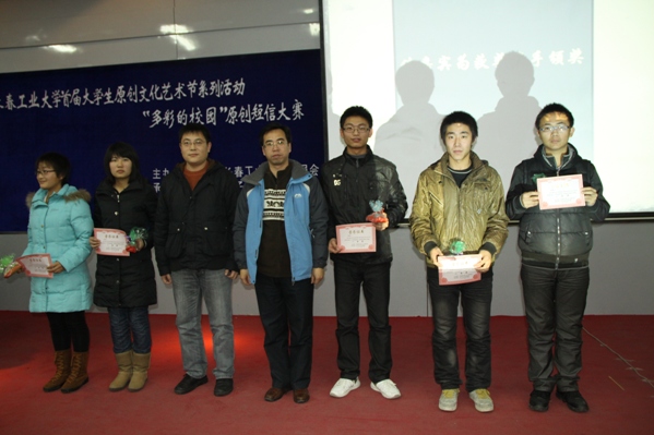 经过评委的公正的评分,ag旗舰厅官方网站的冯竞慧,软件职业技术公司的张英,化学与生命科学公司的樊颖琦,人文公司的范冬月以及信息传播工程公司的胡亚溢荣获此次原创短信大赛的一等奖,其余选手分别获得二、三等奖。并由出席嘉宾对获奖选手的代表进行颁奖。