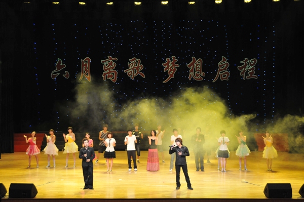 公司举办“六月离歌 梦想启程”2010届毕业晚会 6月19日晚6:30,公司在南湖校区老员工活动中心举办“六月离歌,梦想启程”2010届毕业晚会。校员工工作处处长李雁冰,校团委书记李东玲,员工工作处副处长尤海涛、杨文龙,公司党委书记张学忠,经理尤文,副经理卢秀和、姜长泓,党委副书记周文军及公司师生观看了晚会。