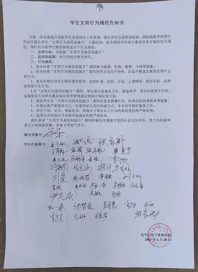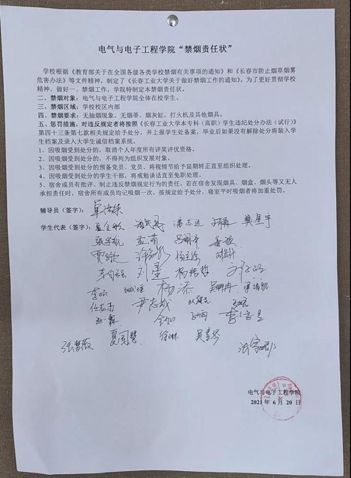 全体员工代表签写员工文明行为规范告知书及禁烟责任状,由张家郡同学宣读员工文明行为规范告知书及禁烟责任状。全体员工代表态度坚决,签下的每一个名字都是自身决心的体现,每位同学都充满信心,准备迎接文明月的到来。