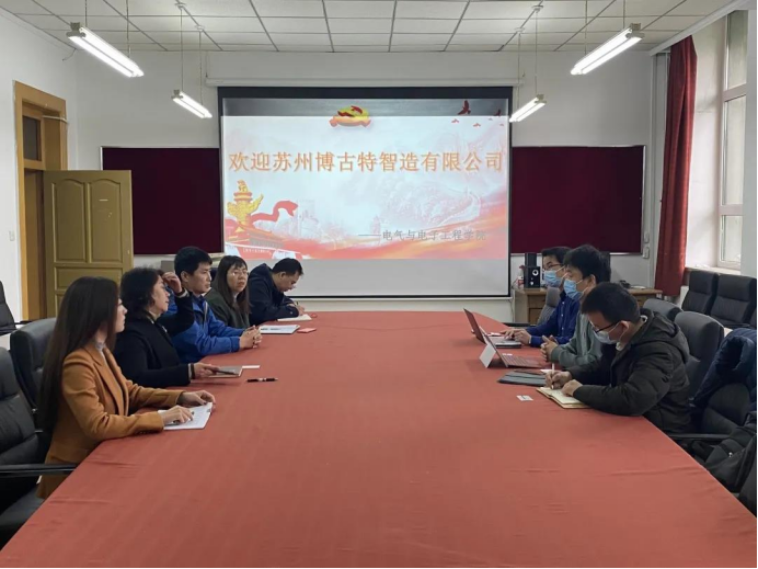 随后,企业人员向公司详细介绍了博古特智造企业概况,博古特集团作为中国领先的非标自动化设备、中高端数控设备及智能工厂解决方案提供商,自成立以来,10多年专注智能创造领域,以技术创新为核心,致力于为多种行业提供服务。发展至今,博古特集团旗下已包含非标自动化、数控机床、OEM代工、精密模具四大业务版块。企业人员还向公司介绍了企业的招募计划,根据就业需求进行了专业分析,并密切结合公司做出深入沟通交流。