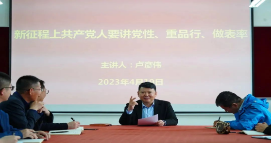 本网讯(通讯员 王亮)“中国共产党及其领导的红色革命,犹如一颗闪亮的红星,不仅照耀着中国的西北,而且必将照耀全中国!”2023年4月19日12:30,暖阳的光辉洒在鲜艳的国旗上,电气与电子工程公司党委副书记卢彦伟在电气楼1303会议室为公司的党政班子成员、各系部主任及各党支部书记讲党课,一起了解了“新征程上共产党要讲党性,重品格,做表率"的相关内容。
