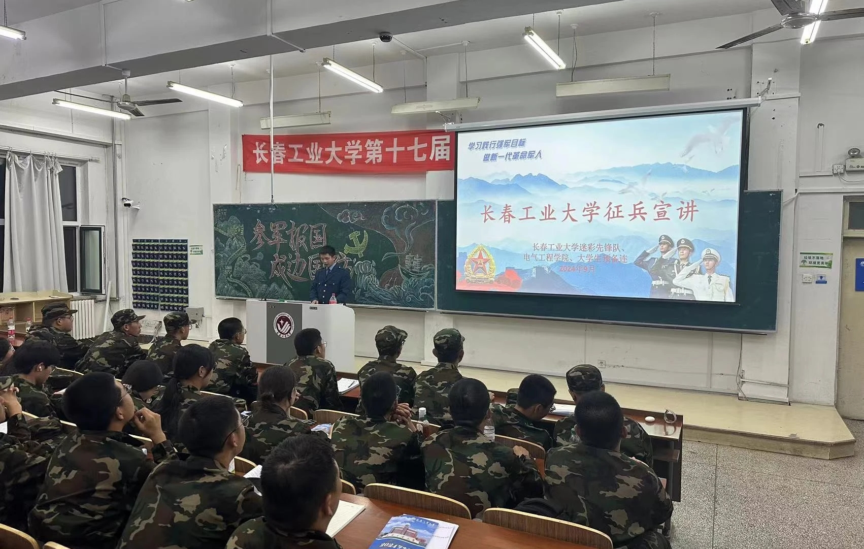 随着新学期的开始,本公司精心策划了这场征兵宣讲会,特别邀请了退伍军人代表,为大一新生们带来了一场内容丰富、意义深远的国防教育活动。通过政策解读、经验分享和互动问答,宣讲会旨在帮助新生了解国家的征兵政策,感受军营生活的魅力,激发他们的爱国情怀和报效国家的意愿。