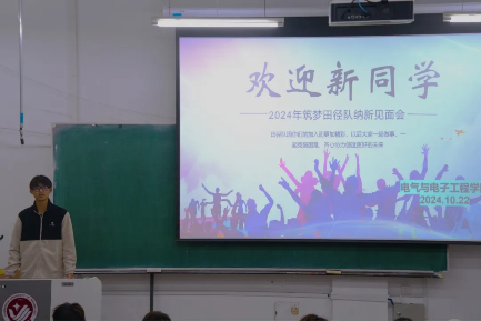 接着,田径队队长陈博诚自信登场。他热情地进行自我介绍,并详细地为大家介绍了我们引以为傲的筑梦田径队。从队伍的辉煌历史到日常的训练点滴,从团队的团结精神到未来的奋斗目标,让新成员们对即将开启的田径之旅充满憧憬。