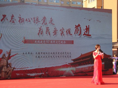 新闻网讯(通讯员 钱力为)为庆祝中国共产党建党97周年,2018年6月21日下午5时,由中国共产党长春市朝阴区双德乡前进村总支部委员会,联合我院党委共同举办的“不忘初心跟党走,为民务实促前进”建党97周年文艺晚会在繁荣小区隆重举行。双德乡党委书记吴树清、双德乡党委副书记肖琨、前进村党总支书记刘忠莅临晚会现场,公司团委副书记娄婷婷出席晚会现场。